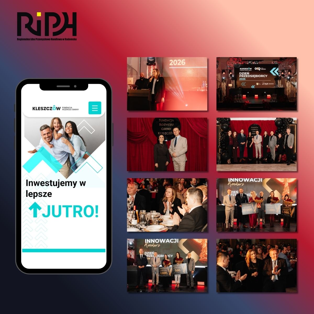 W piątek, 10 kwietnia, w sali bankietowej Hotel Porto w Radomsku odbyła się uroczysta gala „Dzień Przedsiębiorcy 2026” podsumowująca I edycję konkursu „Feniks innowacji”! To wyjątkowe wydarzenie, zorganizowane przez Fundacja Rozwoju Gminy Kleszczów oraz Gmina Kleszczów, było doskonałą okazją do spotkań z przedstawicielami świata biznesu, wymiany doświadczeń