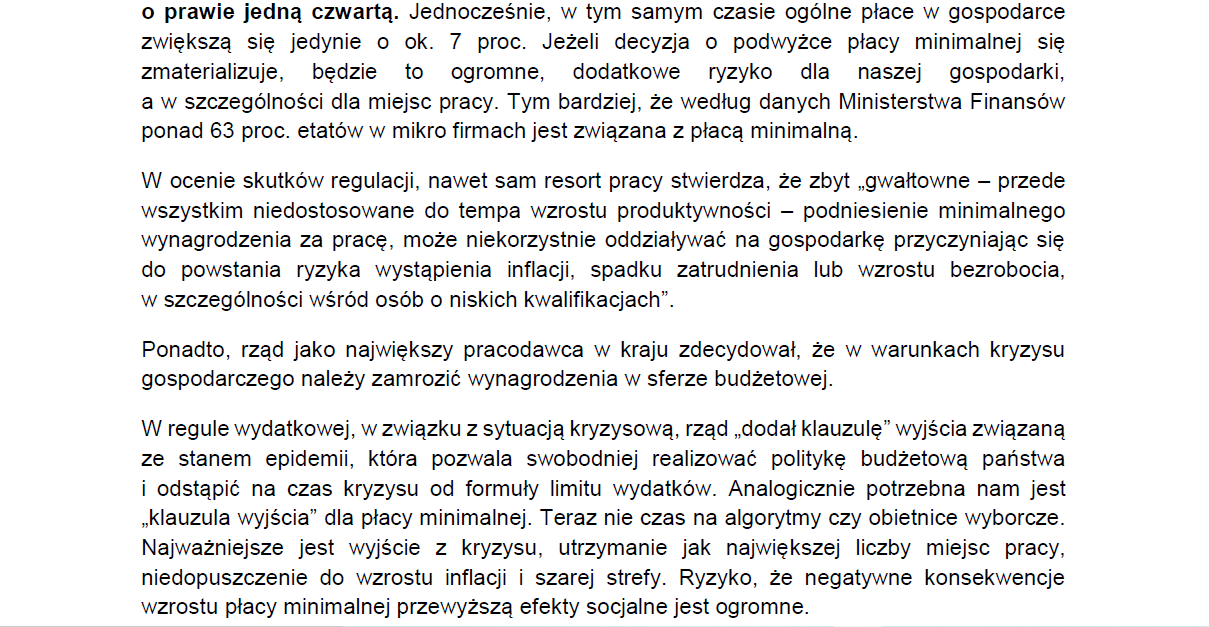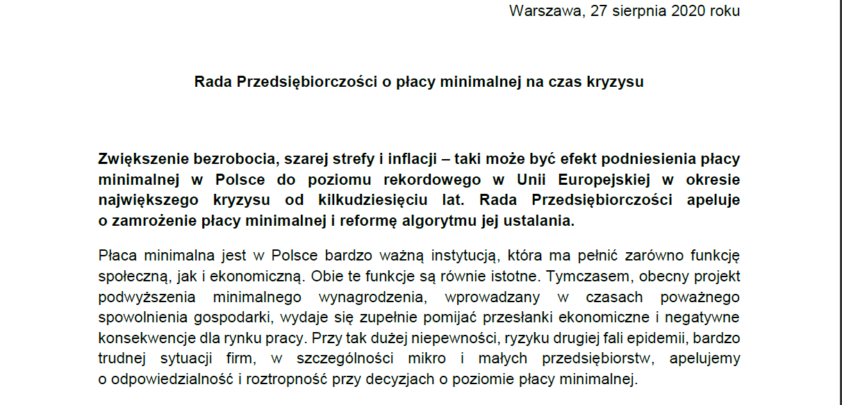 Stanowisko Rady Przedsiębiorczości w sprawie płacy minimalnej