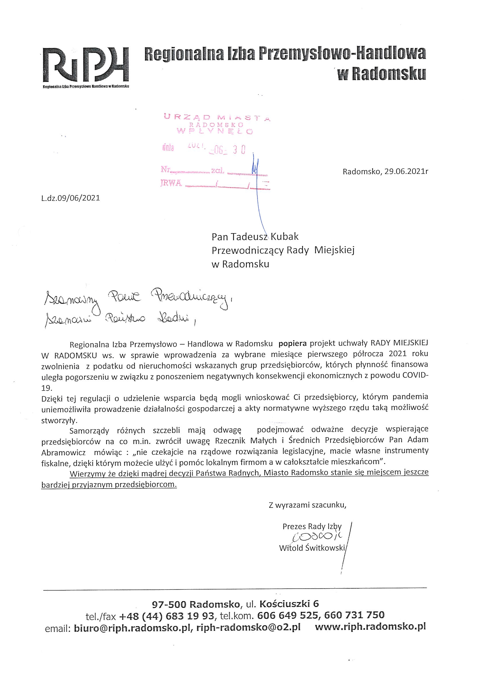 RIPH popiera projekt uchwały RADY MIEJSKIEJ W RADOMSKU